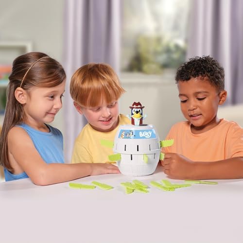 - Kids and Family Games: Each player takes turns sliding the crocodile sticks into Bluey’s barrel, but pick the wrong slot and…POP! Bluey is out of her barrel and so are you
